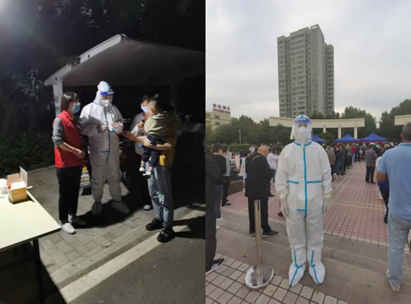 公司黨員張玉、王鑫等同志也積極深入自己所在社區(qū),本著“社區(qū)是我家,防疫靠大家”的工作理念,穿上防護服、拿起擴音器,在門禁值守、搬運物資、流調(diào)排查的現(xiàn)場都能看見他們的身影,他們加班加點,他們不辭辛勞,用奉獻精神發(fā)揚黨員干部的使命擔當,用拼搏態(tài)度擦亮防疫志愿者最靚麗的底色。
