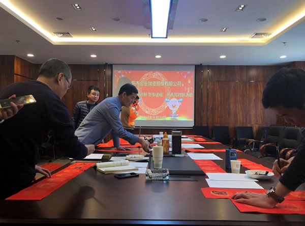 為營造歡樂祥和的節(jié)日氣氛,讓每個干部職工能切身感受到中國傳統(tǒng)文化的氣息,1月29日,公司開展了“辭舊迎新,賀歲送!毙麓簩憣β(lián)活動活動。邀請四位書法老師現(xiàn)場為大家寫對聯(lián),送祝福,將節(jié)日的喜慶提前送到各位員工的身邊。